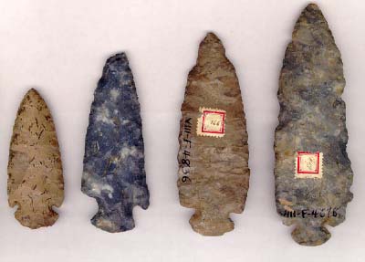 spécimen de gauche est un bel exemple d'une pointe archaïque lancéolée