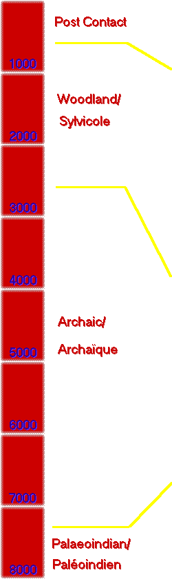 The time chart below lets you quickly see some of the different types of artifacts which characterize the three main periods which are represented in the archaeological collections of the Ottawa-Carleton Region.
