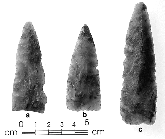 d'objets appelée "lame à cache meadowoodien" (b & c).
