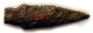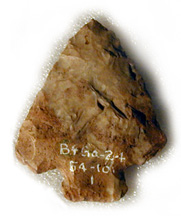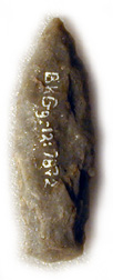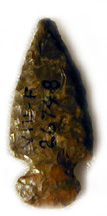 | Notched projectile point Morrison's Island, Quebec (near Pembroke, Ontario) 5,000 years old Length: 4 cm Gift of Clyde Kennedy, 1994 CMC BkGg-12:6615 |  | Notched projectile point Baie Mooney, Ottawa 5,000 years old Length: 4 cm Gift of Clyde Kennedy, 1994 CMC BkGg-12:5604 |  | Lanceolate projectile point Morrison's Island, Quebec (near Pembroke, Ontario) 5,000 years old Length: 6.5 cm Don de Clyde Kennedy, 1994 CMC BkGg-12:7872 |