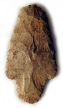 | Notched projectile point Marshall Bay, near Arnprior, Ontario 2,500-5,000 years old Length: 6 cm Gift of George Bleakney, 1940 CMC VIIIF-26748 |  | Stemmed projectile point Driscoll site, Rideau Lakes, Ontario 2,500-5,000 years old Length: 5 cm Gift of Gordon D. Watson CMC BfGa-24-54-101-1 |  | Stemmed projectile point Ottawa 2,500-5,000 years old Length: 10 cm Gift of the Ottawa Literary and Scientific Society, 1884 CMC VIIIF-15075 |