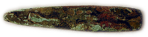 A spectacular array of artifacts made of native copper (an ore containing over 99.3% copper) has been found on sites near Pembroke, Ontario. Dating from the Middle Archaic Period (4,500 to 5,500 years ago), they include projectile points, knives, adzes, fish-hooks, awls, eyed needles, bracelets and pendants. The native copper was most likely obtained through trade with people living in the western Lake Superior region.