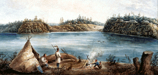 It could be said that Lieut. Henry Pooley, 138 years ago, indicated the preferred location of the future Museum which would showcase the native cultures of this country. This spot had in fact been prepared by innumerable generations of Native people who had earlier stopped and camped at this special place. Plus ça change, plus c'est pareil! Judge for youself the degree of correspondence between the Pooley watercolour and the view from the CMC's fountain. Just click here. |