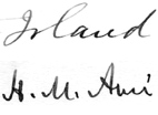 A critical and revealing comparison can then be made with Henri-Marc Ami's 1926 signature and the word "Island" (in a 1929 letter), as found on documents written by Ami and kept in the Archives of the Canadian Museum of Civilization, and shown in the centre below. Clearly the resemblance is very good and demonstrates that these labels were written out by Ami.